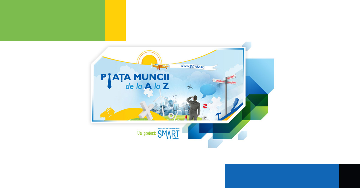 Centrul de Dezvoltare SMART, in parteneriat cu Patronatul Intreprinderilor Mici si Mijlocii Galati si Patronatul Tinerilor Intreprinzatori din Regiunea de Sud-Est, au implementat proiectul Piata Muncii de la A la Z, finatator POS DRU, Axa prioritara 5 “Promovarea masurilor active de ocupare”, Domeniul Major de interventie 5.1 “Dezvoltarea si implementarea masurilor active de ocupare”.