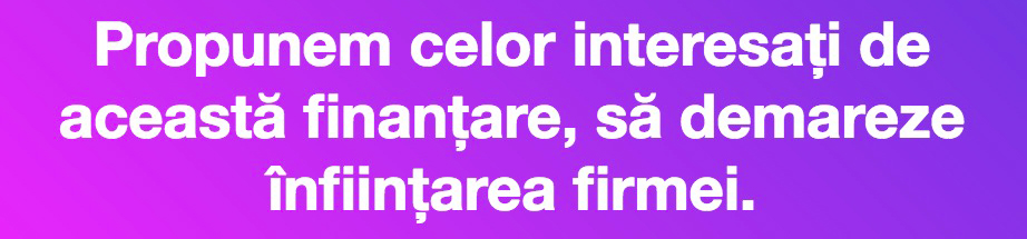 In view of increasing the number of businesses and revitalizing the economic environment, increasing the number of employees, reducing the number of unemployed and increasing consumption, the program for stimulating the establishment of SMEs, called “Start-up Nation – Romania” offers 100% non-refundable financing for up to 200.000 lei/project for a maximum number of 10.000 beneficiaries annually This means that the entrepreneur will have a 0% personal contribution in terms of eligible expenditure.